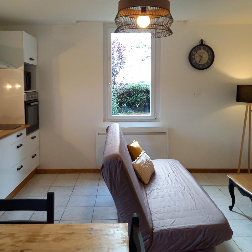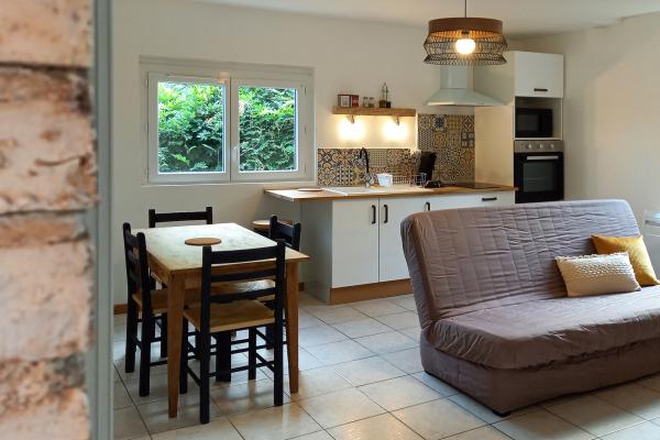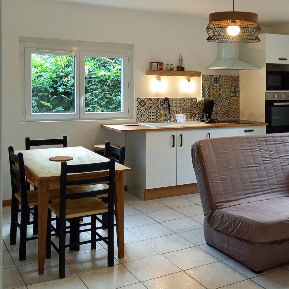 Capacité 2-4 pers. | 2 nuits minimum | Surface (m2) 42 | Couchages 4 | Chambre 1 | Canapé-lit 1 | Salle de bain 1 | Terrasse 1 | Jardin privatif 1 | Connexion WIFI